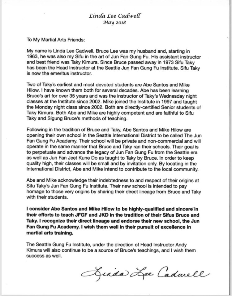 Our parent school in Seattle is also honoured to be the only JKD school in the world that has been endorsed by Bruce Lee’s widow, Linda Lee Cadwell.